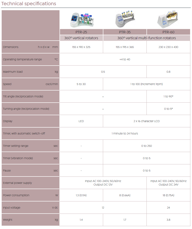 多功能垂直旋转混合器PTR-35是一款可调速率的,外观精致的混合器。多种操作模式,可选垂直旋转,往复模式及振动模式,也可通过编程及多种模式于一体。适用于充分混合微量管内的样品和制备样品时的预处理。